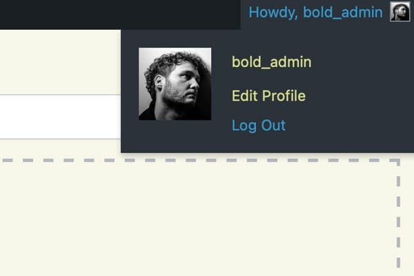 After you are done with your work on the website, hover on top of your username in the upper right corner of the dashboard, and click the Log Out link.